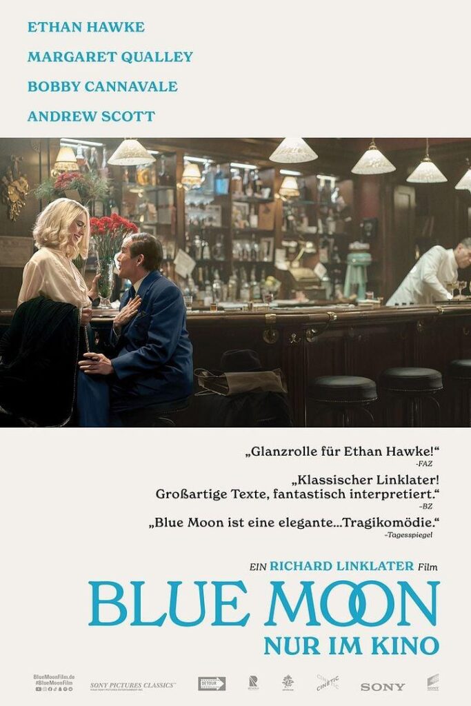 „Blue Moon“ ist Richard Linklaters tragikomödienhafte Biografie über den legendären Songwriter Lorenz Hart, der am 31. März 1943 in der New Yorker Bar Sardi’s Zeuge des Triumphes seines Ex-Partners Richard Rodgers mit dem Musical „Oklahoma!“ wird. Inmitten von Stars, Künstlern und Freunden reflektiert der alkoholkranke Hart melancholisch über sein Leben, Freundschaft, Liebe und verpasste Chancen – eingefangen in Echtzeit voller Witz und Tiefe. Mit Ethan Hawke in einer Oscar-nominierten Glanzrolle neben Margaret Qualley, Bobby Cannavale und Andrew Scott feiert der Film Kreativität und Zerbrechlichkeit des Künstlerdaseins.